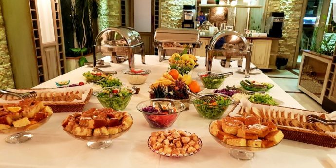 On the ground floor of the hotel, there is an air-conditioned restaurant with a capacity of 120 seats. The hotel has a wine bar and a chapel where pilgrims gather for communal and personal prayer.